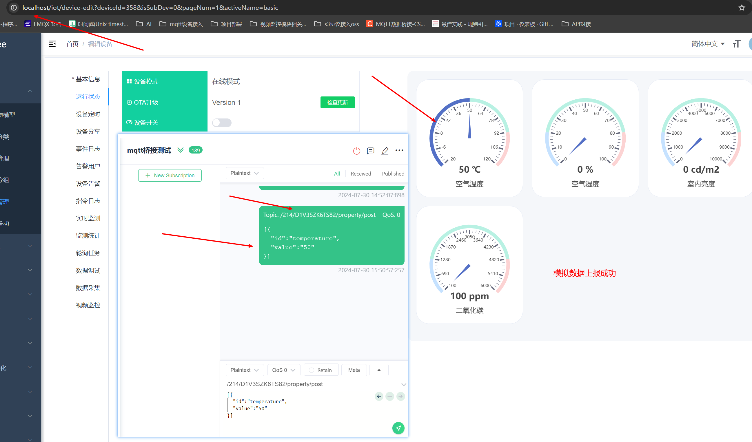 我们通过桥接功能将本地设备上报的数据桥接到yanfan演示站点数据
